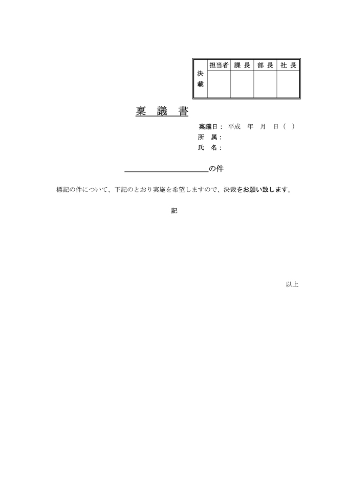 9,000원/월품의서2(일본어)입니다. 품의서2(일본어) 양식이 일본어로 작성된 문서양식입니다. 회사서식, 업무운용 분야에 활용할 수 있습니다. 품의서2(일본어) 양식