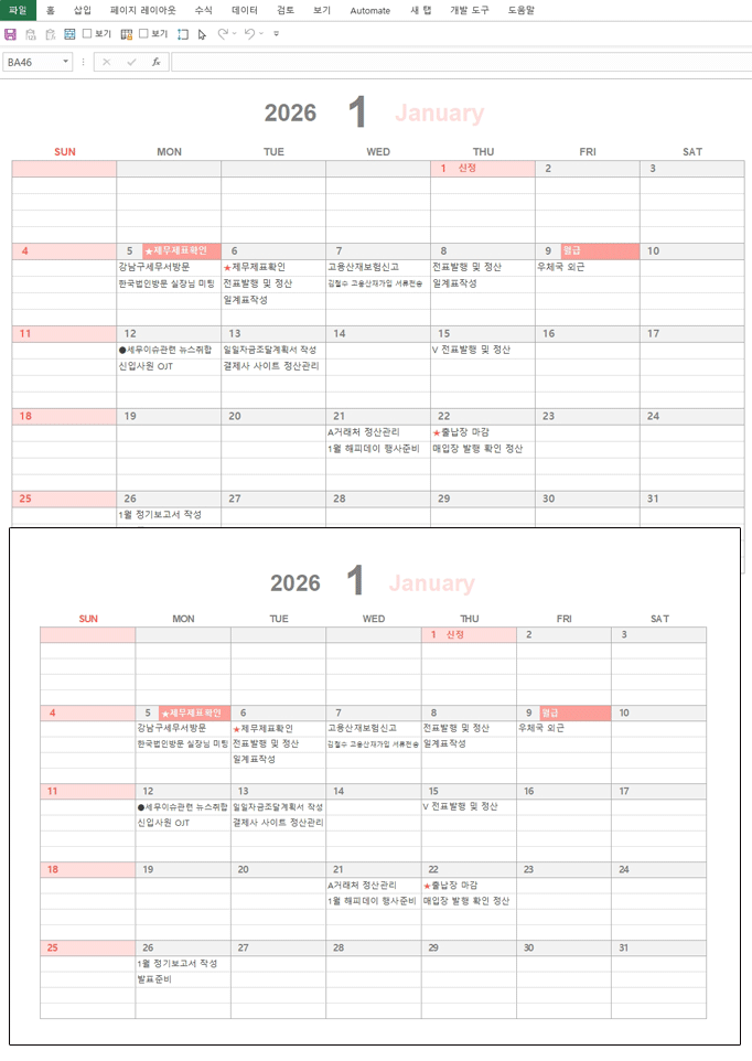 2026년 달력(월별일정,스케치북형) 서식입니다. 2026년 엑셀 달력(월별일정,스케치북형) 서식은 넓은 여백과 깔끔한 구성으로 사용자가 중요한 내용을 필기하며 자신만의 스타일로 달력을 꾸밀 수 있습니다. 개인의 창의성을 발휘하여 일상 계획에 즐거움을 더하는 감각적인 달력 서식입니다.