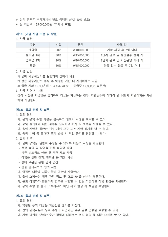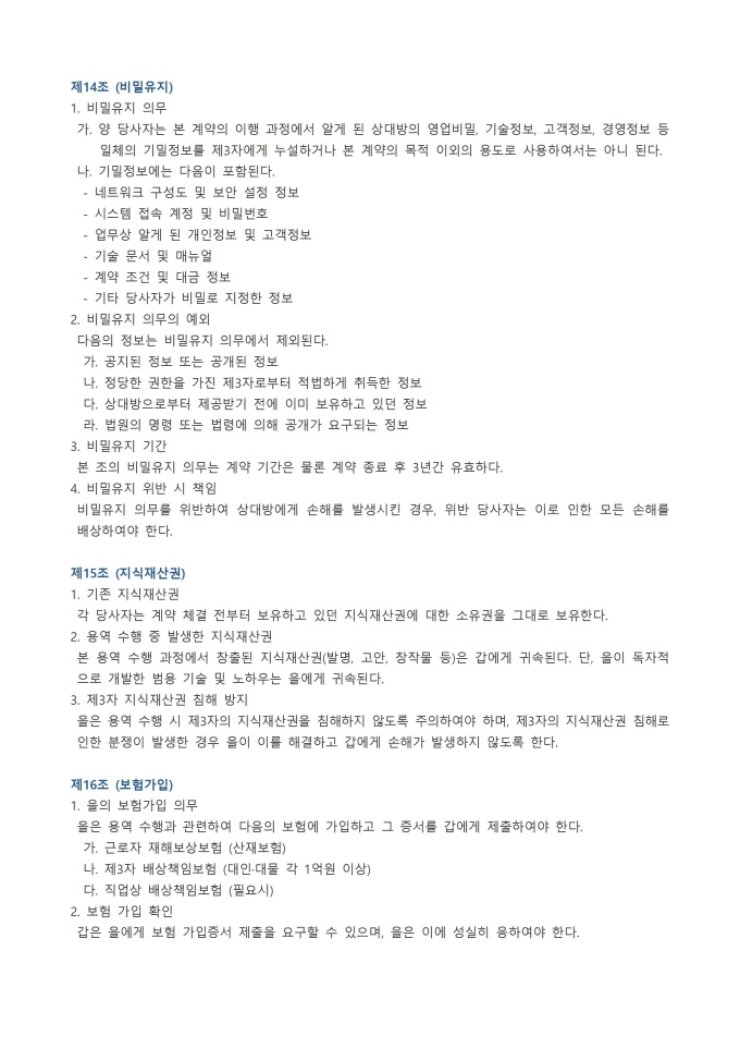 9,000원/월용역계약서 서식입니다. 용역계약서는 특정한 일의 완성이 아닌 노무의 제공 자체를 목적으로 하는 계약으로, 발주자(갑)가 수급자(을)에게 일정한 용역의 제공을 의뢰하고 그 대가를 지급하는 내용을 담았습니다.