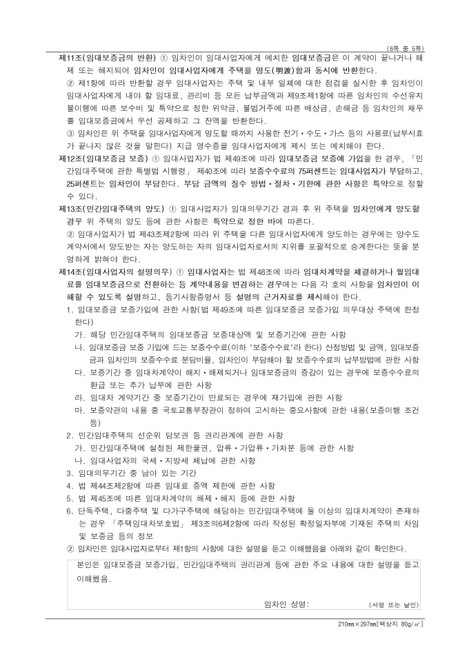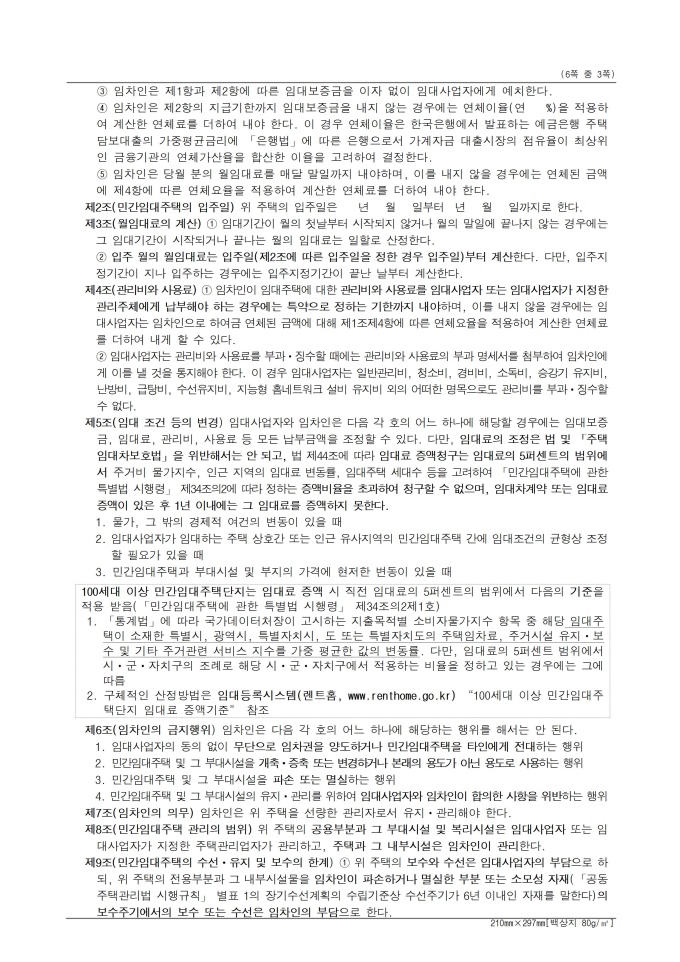 9,000원/월표준임대차계약서 입니다. 해당 서식은 임대사업자와 임차인이 임대차계약을 체결하고 이를 증명하기 위해 계약서 2통을 작성하고 각각 날인한 후 1통씩 보관해야 합니다. 민간임대주택에 관한 특별법 시행규칙 [별지 제24호서식] <개정 2025. 10. 31>
