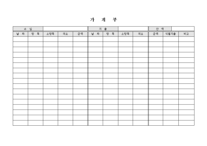 9,000원/월가계부의 형태로 수입, 지출, 잔액, 예상소비금액등을 기입하셔서 사용하는 서식입니다.