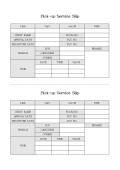 픽업 서비스에 대한 내역을 기록할 수 있는 Pick-up Service Slip 양식입니다. 고객 성명과 도착 및 출발 일자, 차량 종류, 시간 등의 항목을 기재할 수 있습니다.