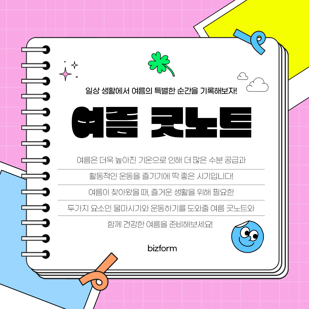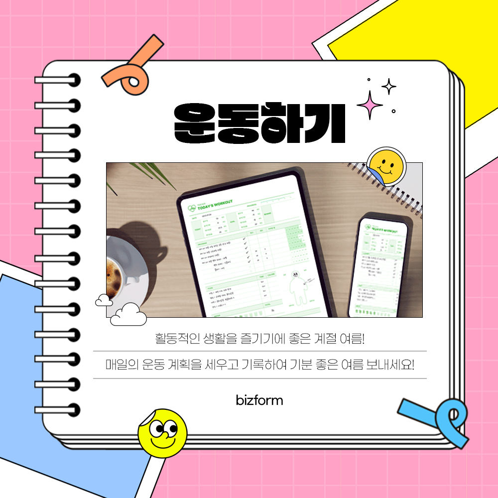 여름이 찾아왔을 때, 즐거운 생활을 위해 필요한 두 가지✌️ 요소인 물 마시기와 운동하기를 도와줄 여름 굿노트와 함께 건강한 여름을 준비해 보세요!💪