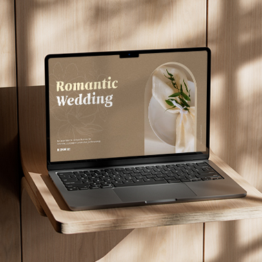 결혼하면 생각나는 단어가 무엇이냐 물어본다면 바로 로맨틱 아닐까요? 차분한 베이지 톤의 색상과 둥근 모양의 도형들로 이루어진 디자인이 특징인 부드러운 느낌의 템플릿입니다.