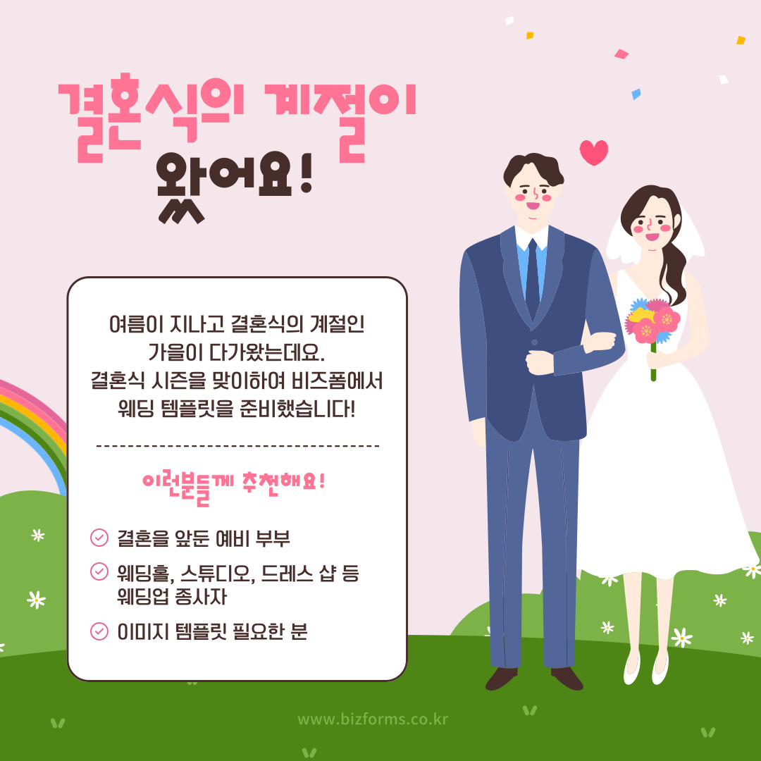 결혼식 시즌을 맞이하여 비즈폼에서 준비한 웨딩 템플릿을 만나보세요!