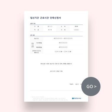 임신기간, 근로시간 단축 예정일 및 종료예정일, 근무 시간 및 종료 시간을 작성하여 의사의 진단서와 함께 회사에 제출합니다.