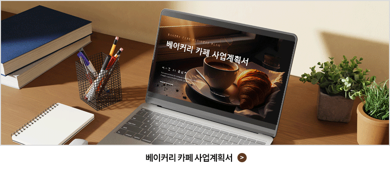 이번에는 베이커리 카페를 준비하시는 분들을 위해 베이커피 카페 사업계획서를 준비하였습니다. 내용뿐만 아니라 디자인까지 되어있어 어려움을 겪고 있는 분들이라면 비즈폼에서 제공하는 템플릿을 사용해 보세요!