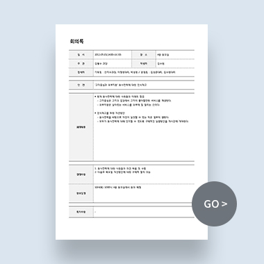 회의록은 ‘회의 개요’와 ‘회의 내용’이라는 두 개의 카테고리로 구분되는데요. 회의 개요와 회의 내용은 회의록을 작성할 때 기본 틀이자 핵심 요소라고 볼 수 있습니다.