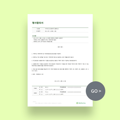 상황에 따라 작성하는 항목이 다른데요. 채무와 관련한 내용을 작성한다면 변제기한, 변제방법, 이자 등을 추가로 명시합니다. 일반적으로 증인이나 특약사항, 합의서의 유효기간, 비밀유지 조항, 면책조항 등은 선택사항이니 필요한 경우 기입하면 됩니다.
