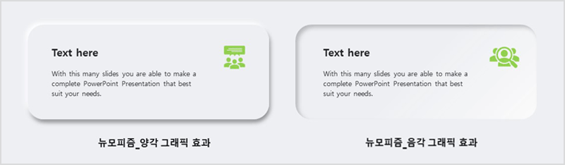 파워포인트에서도 충분히 그래픽 효과를 줄 수 있다는 사실 알고 계셨나요? 그래픽 효과를 줄 수 있지만 사용법을 몰라 단순하게 제작하는 경우가 많습니다. 오늘은 다양한 파워포인트 그래픽 효과 중 뉴모피즘에 대해 알려드리도록 하겠습니다. 뉴모피즘은 UI/UX 디자인 분야에서 사용되는 디자인 이지만, PPT 디자인에 적용하여 트렌드한 느낌을 줄 수 있습니다. 이를 통해 단순한 템플릿을 클릭 몇 번으로🖱️ 고급스러운 디자인으로 변화시켜 보세요!