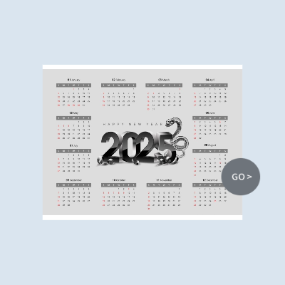 첫 번째 가로형 달력은 원페이지 가운데 뱀 이미지를 넣었고, 두 번째 가로형 달력은 붉은 뱀의 이미지를 삽입하여 을사년의 콘셉트가 돋보이게끔 디자인되었습니다.