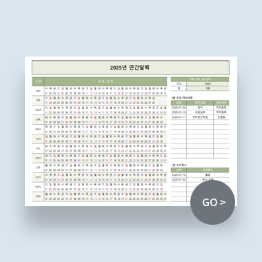 연간 달력은 1년 동안의 날짜와 주요 일정을 한 페이지에 정리한 달력입니다.
