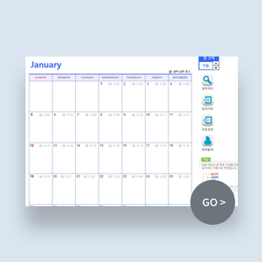 엑셀 자동 달력은 사용자가 입력한 특정 연도를 기준으로 달력을 자동으로 생성합니다. 자료만 입력하면 추가 데이터도 자동으로 입력되어 번거로움을 없애고, 누적관리가 가능해 효율적인 일정 관리가 가능합니다. 항목별 검색 기능을 제공하고 있어 데이터를 손쉽게 찾을 수 있습니다.