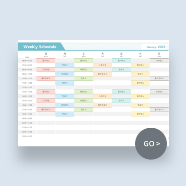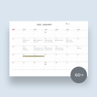 전체적인 일정 파악과 장기적인 계획 수립에 적합하며, 업무, 학업, 프로젝트 관리 등 다양한 목적으로 활용할 수 있습니다. 1년의 일정을 미리 계획해야 한다면 연간 달력을 추천드립니다😎