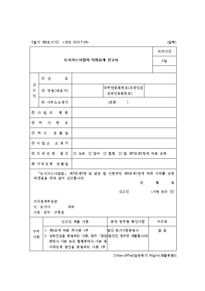 도시가스사업자 지위승계신고서