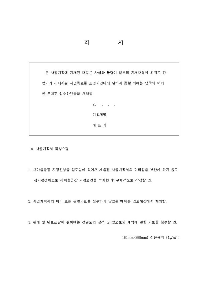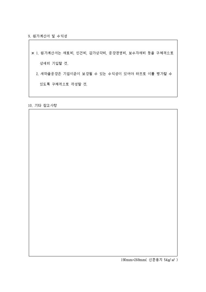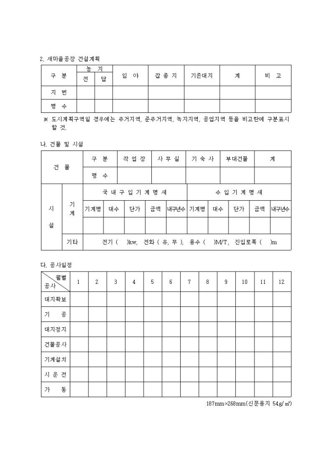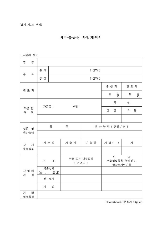새마을공장사업계획서