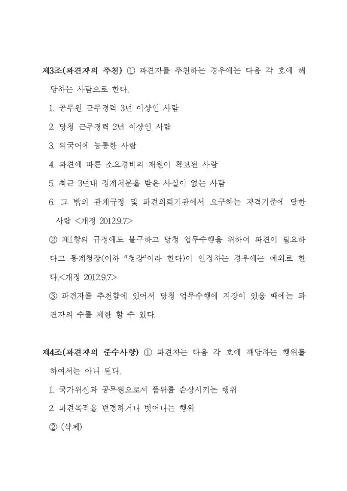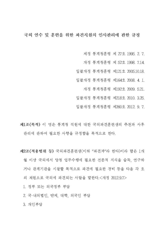국외 연수 및 훈련을 위한 파견직원의 인사관리에 관한 규정