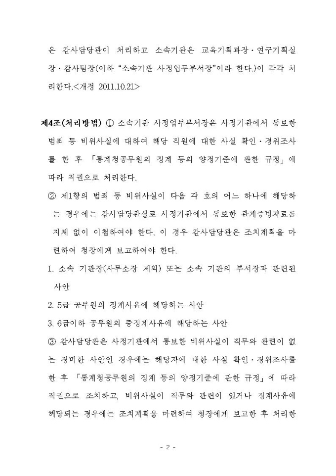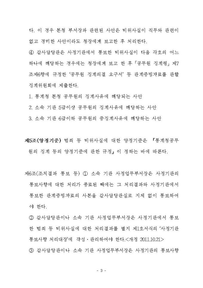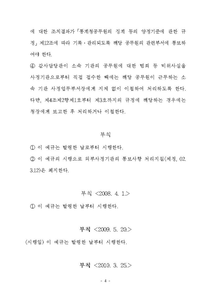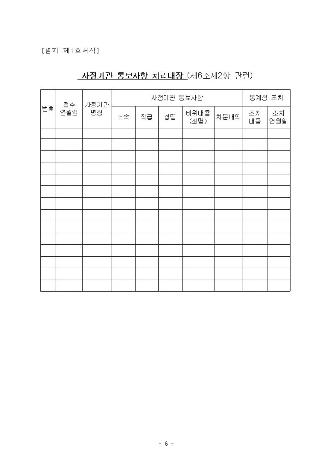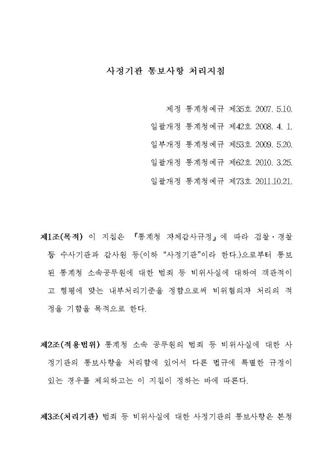 사정기관 통보사항 처리지침
