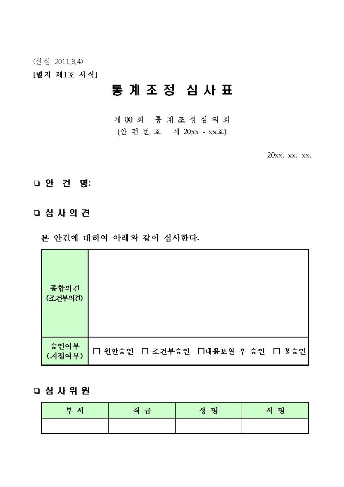 대한민국 정부가 사무의 간소화 및 정보화를 위해 제정하는 사무관리규정에 따라 배포하는 표준서식 입니다. 법규문서, 고시·공고 등에 쓰이는 공고문서, 허가·인가·승인·등록·증명에 관련된 민원문서 등 다양한 행정문서가 개정되었습니다.