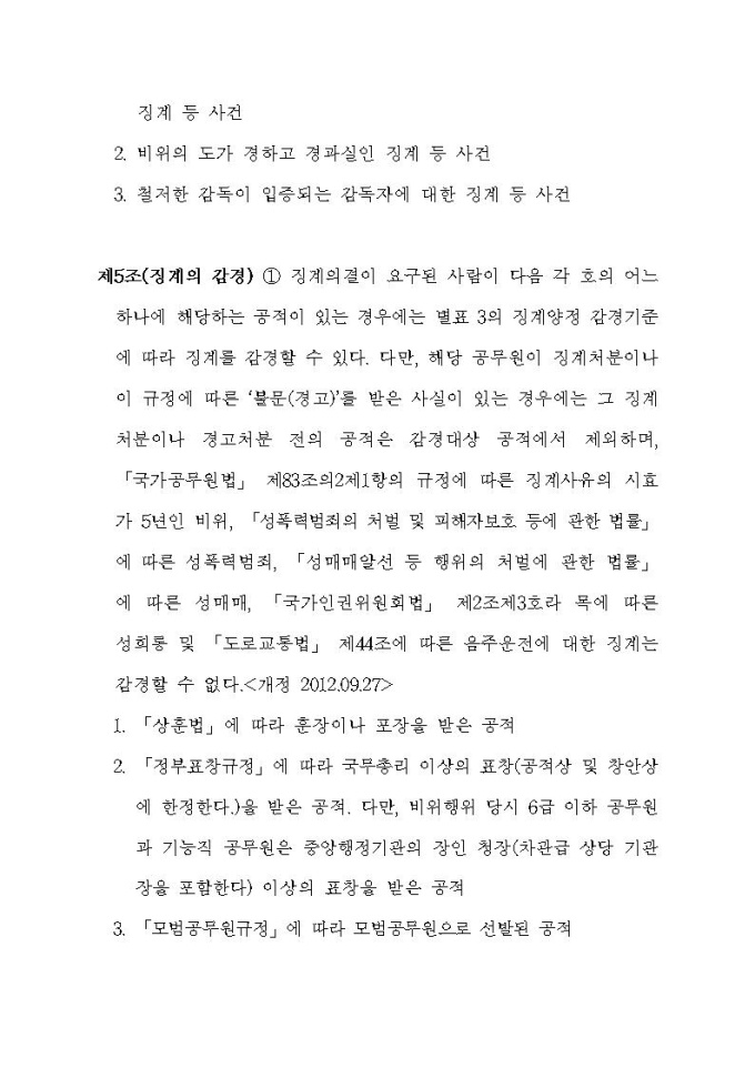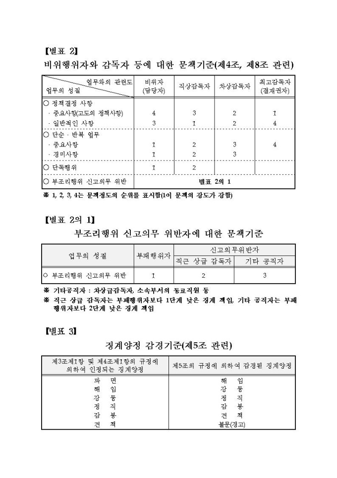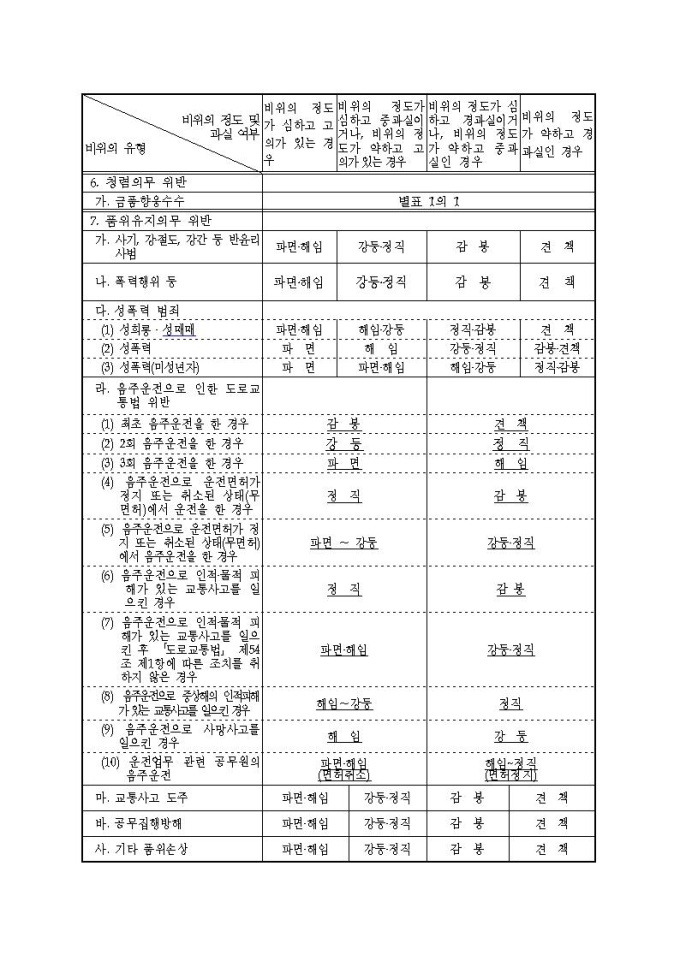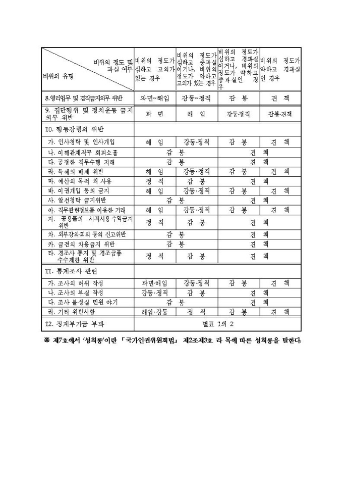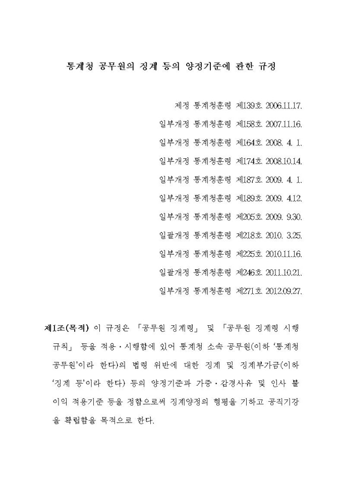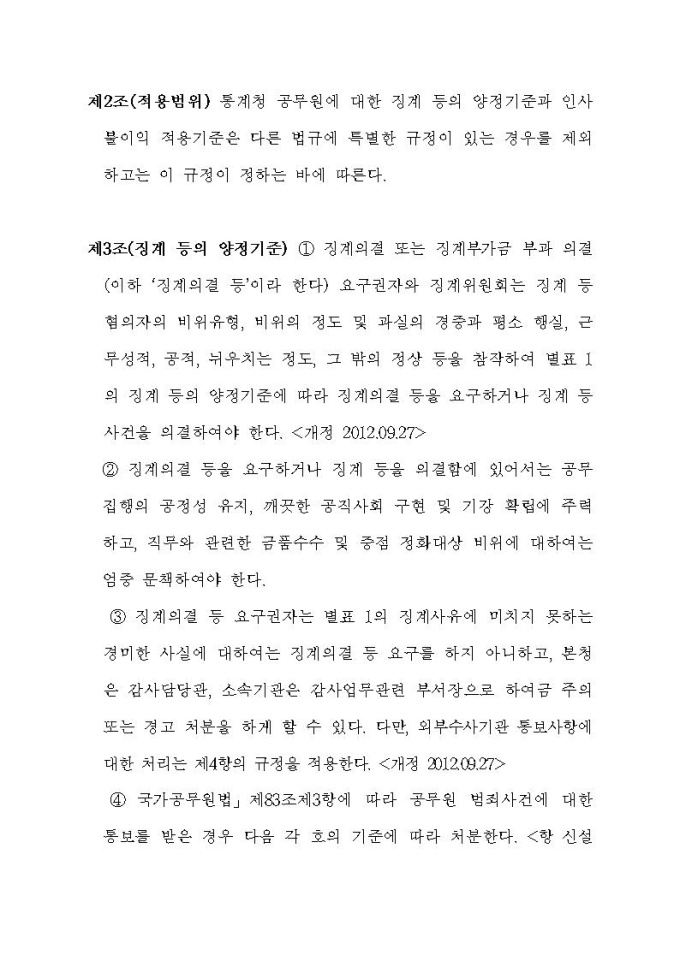 통계청 공무원의 징계 등의 양정기준에 관한 규정