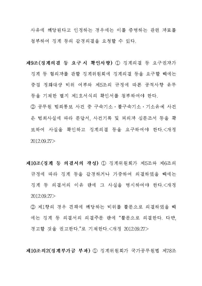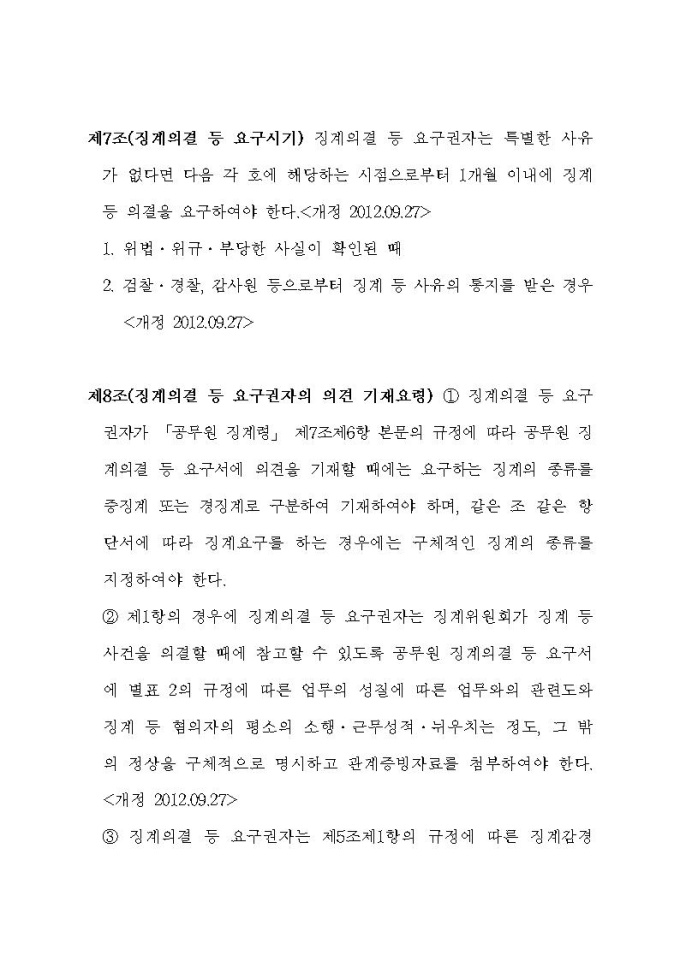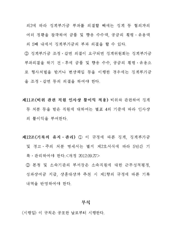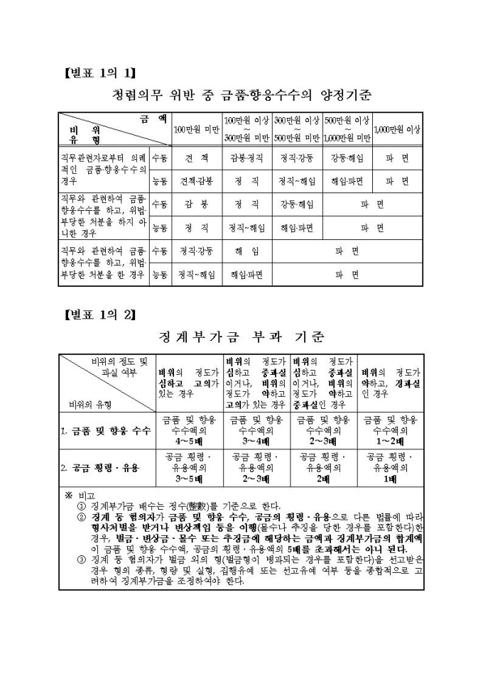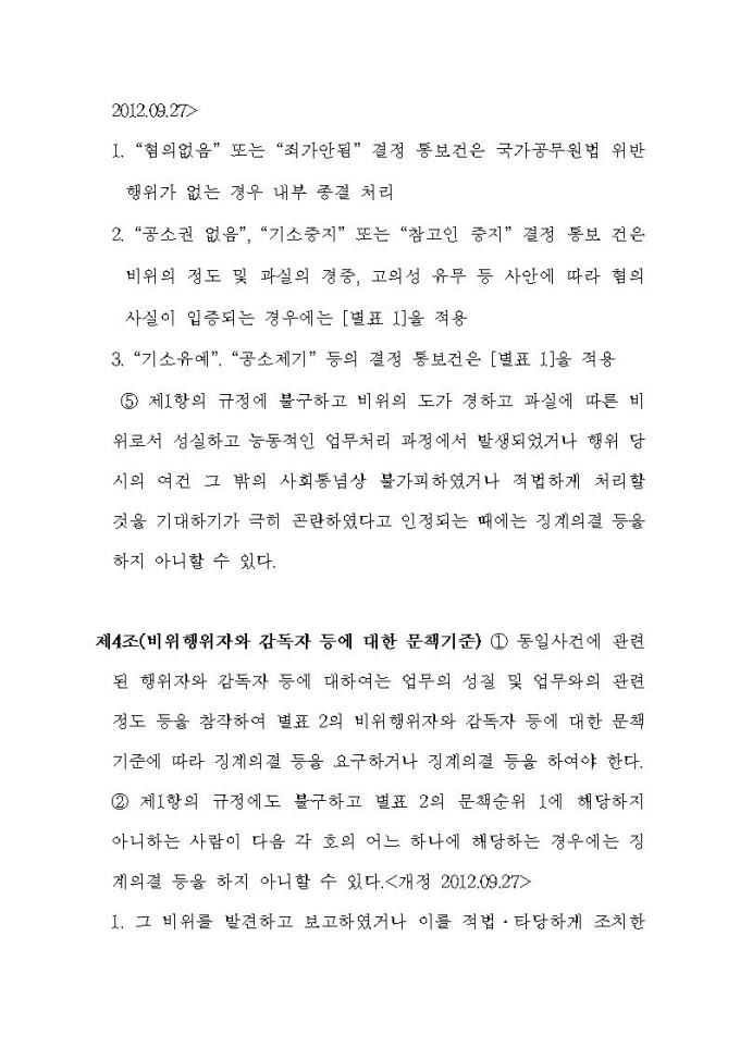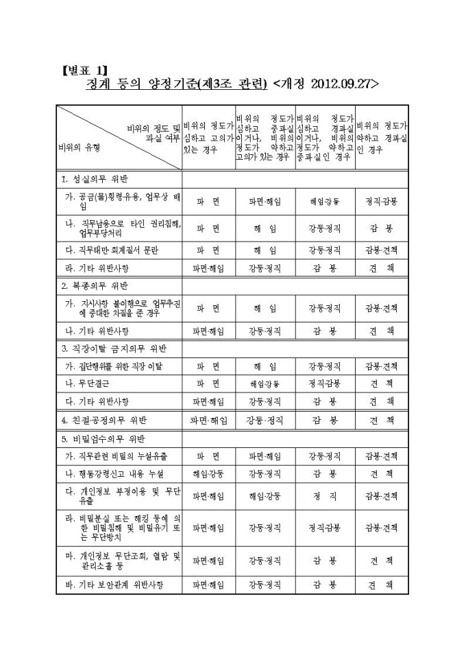통계청 공무원의 징계 등의 양정기준에 관한 규정