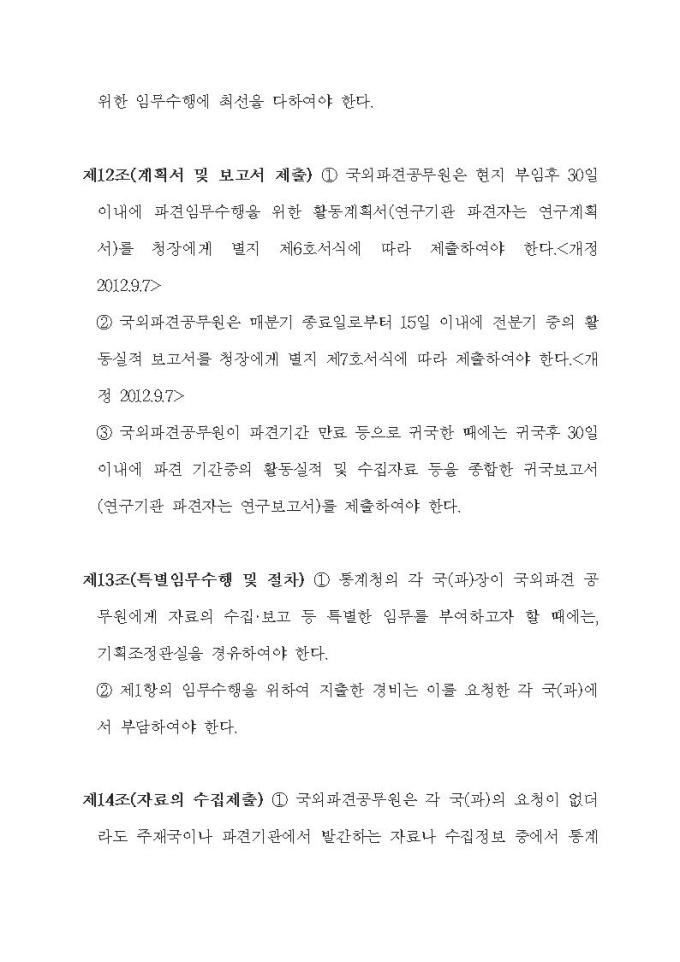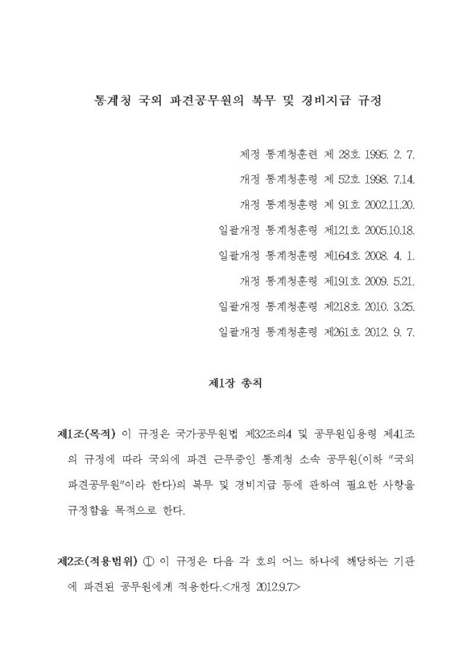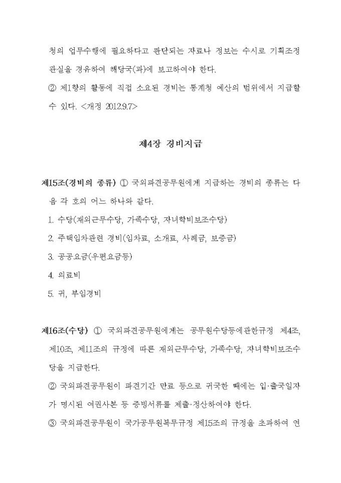 통계청 국외파견공무원의 복무 및 경비지급 규정