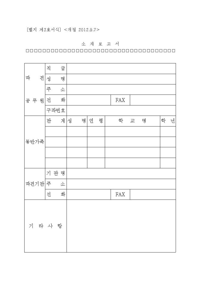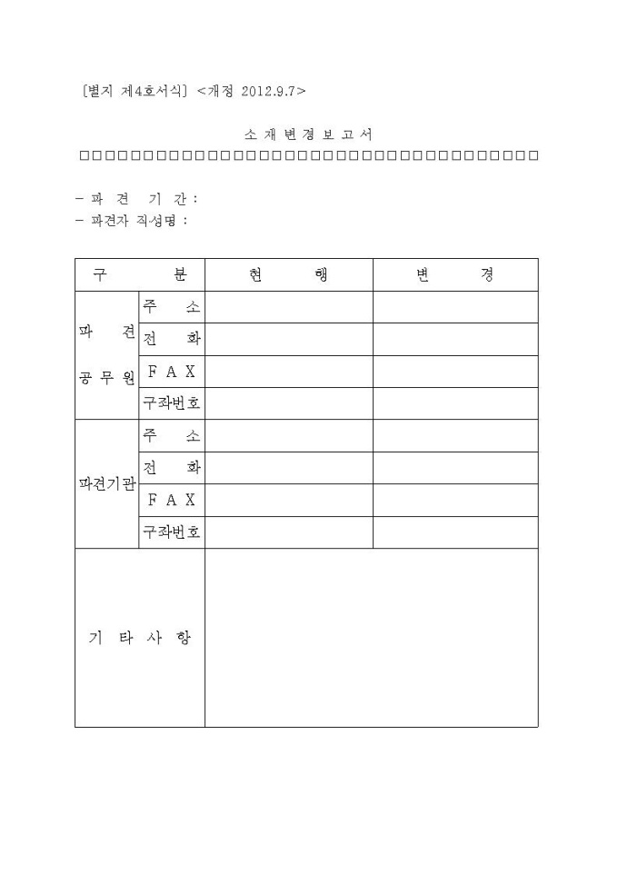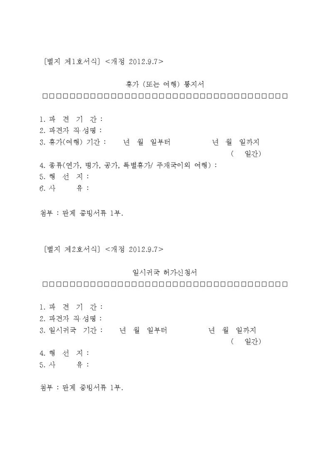대한민국 정부가 사무의 간소화 및 정보화를 위해 제정하는 사무관리규정에 따라 배포하는 표준서식 입니다. 법규문서, 고시·공고 등에 쓰이는 공고문서, 허가·인가·승인·등록·증명에 관련된 민원문서 등 다양한 행정문서가 개정되었습니다.