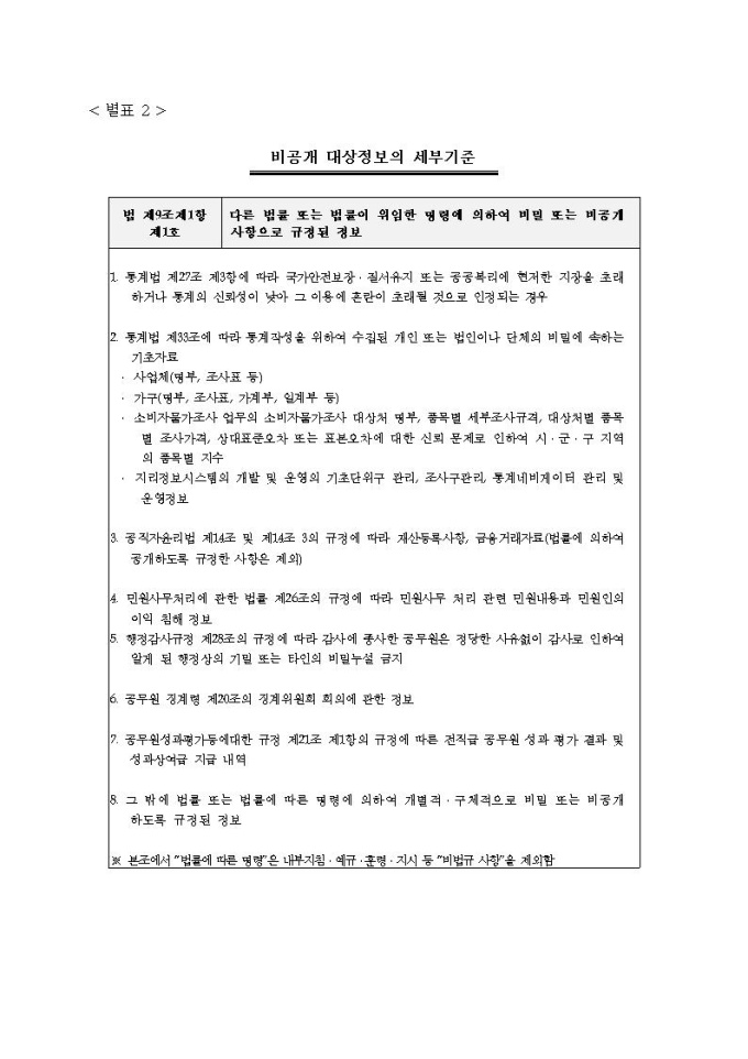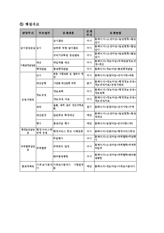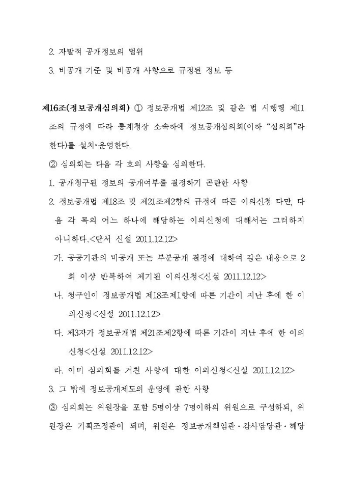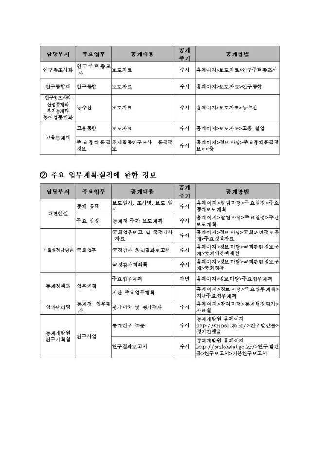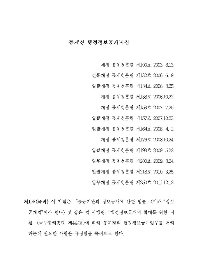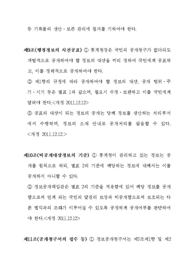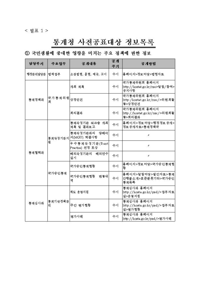 통계청 행정정보공개지침