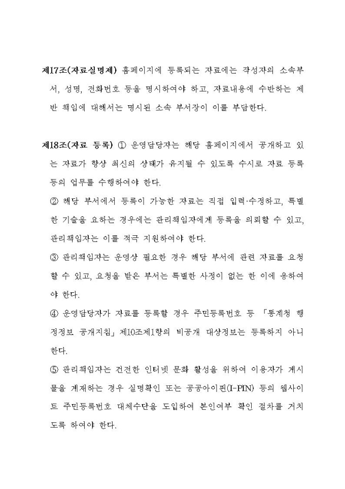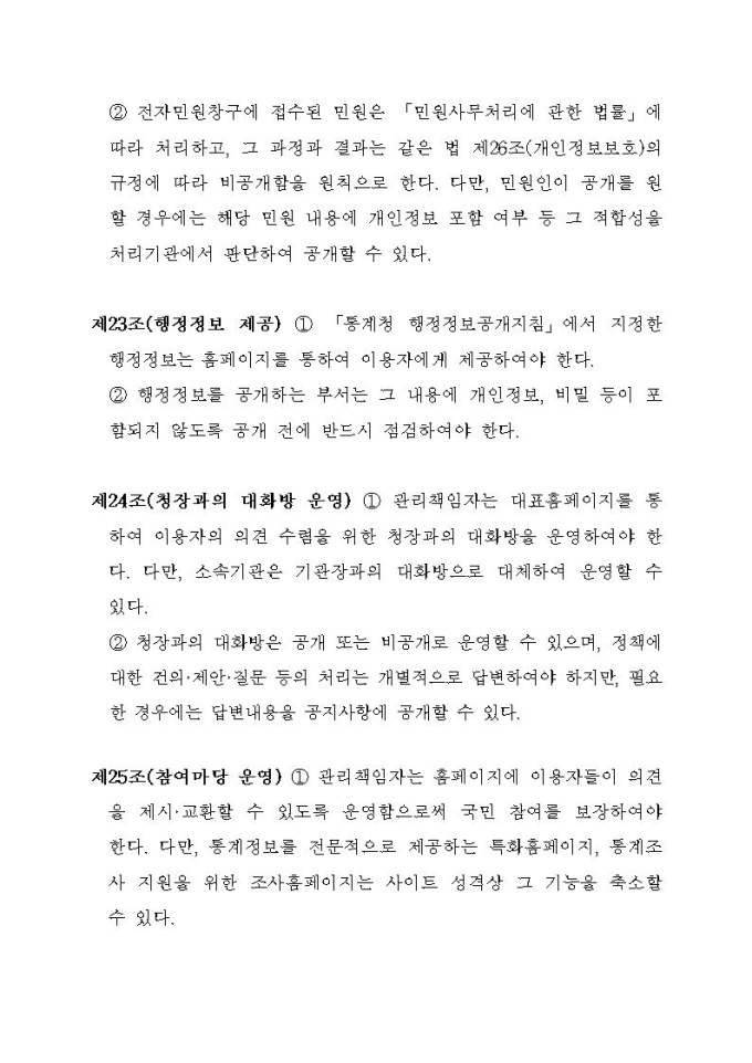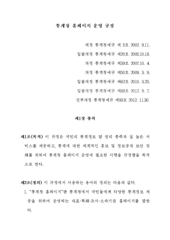 통계청 홈페이지 운영규정