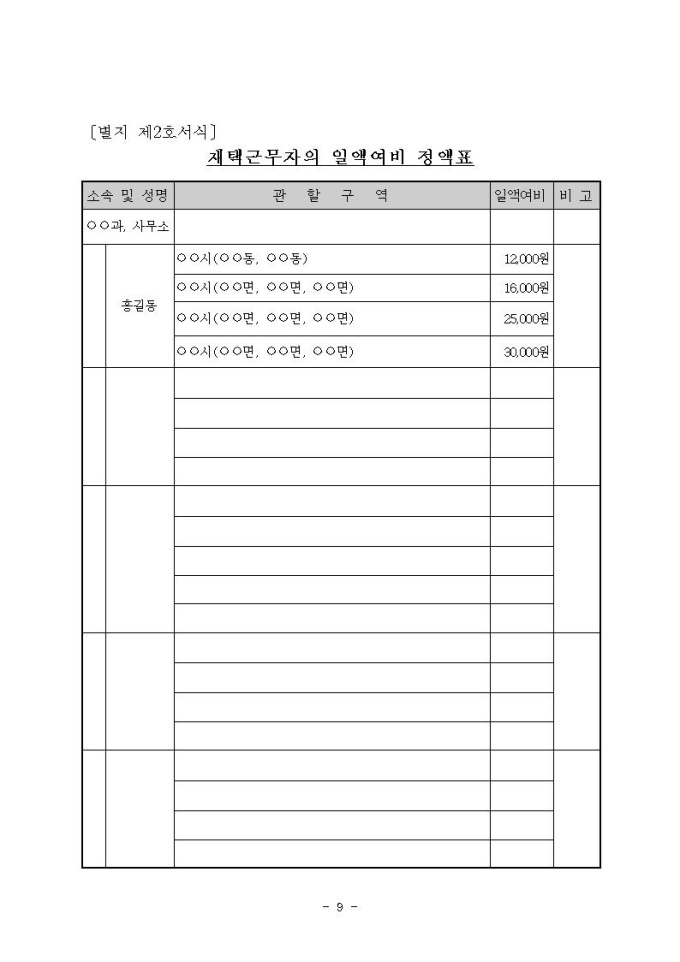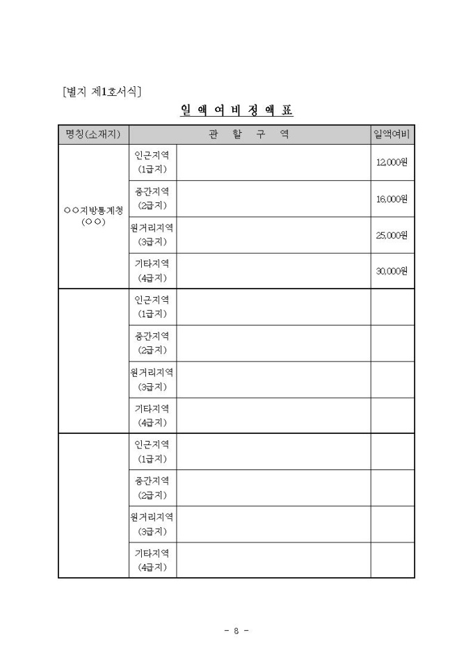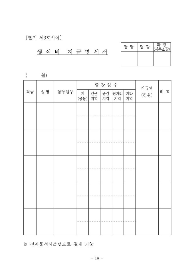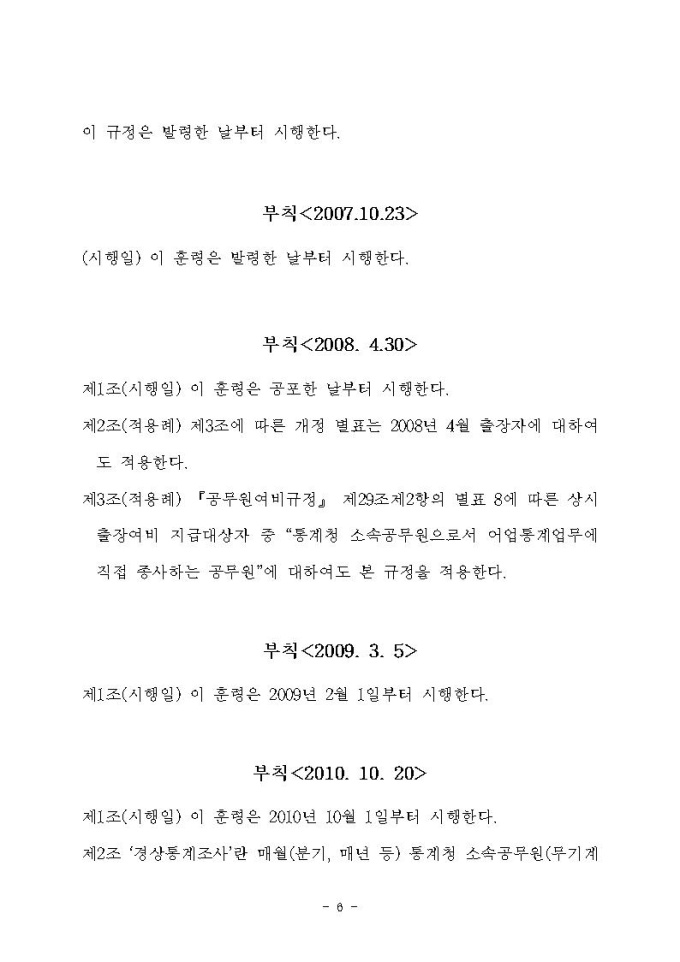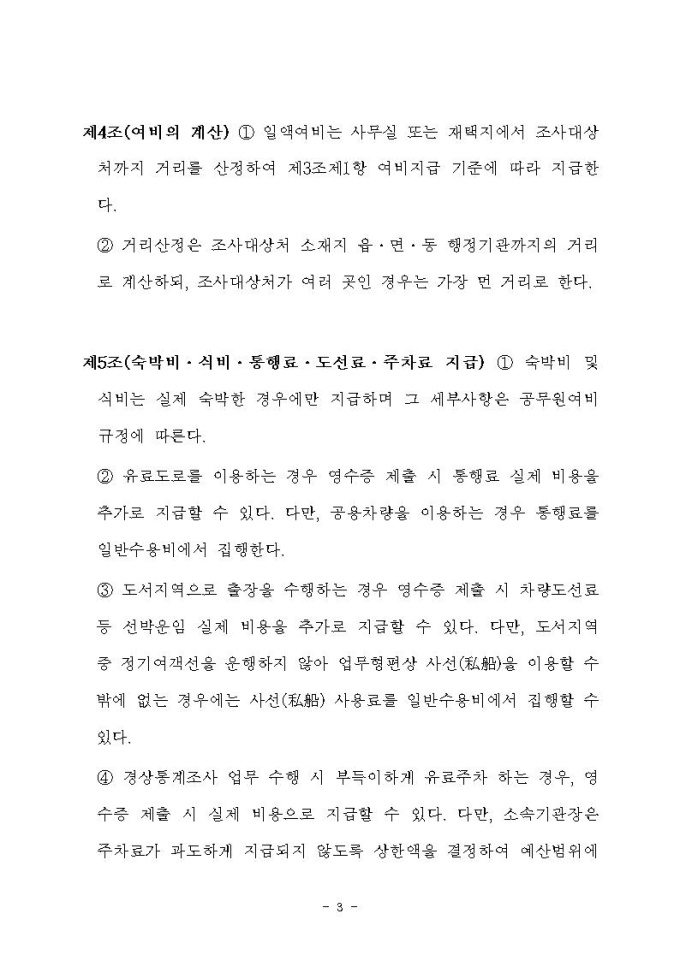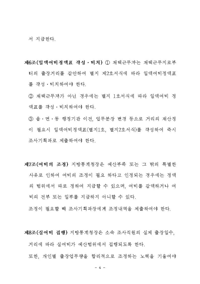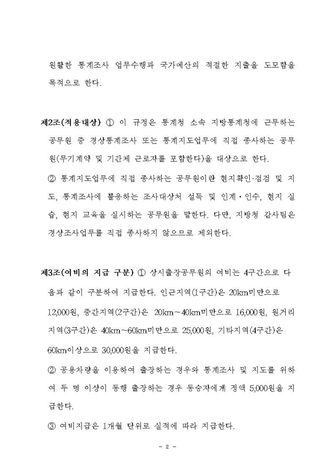 통계청소속 상시출장공무원 여비지급 규정