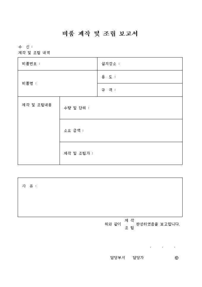 비품 제작 및 조립내용을 기록하는 양식입니다.