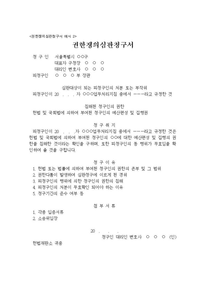 권한쟁의심판청구서 예시2
