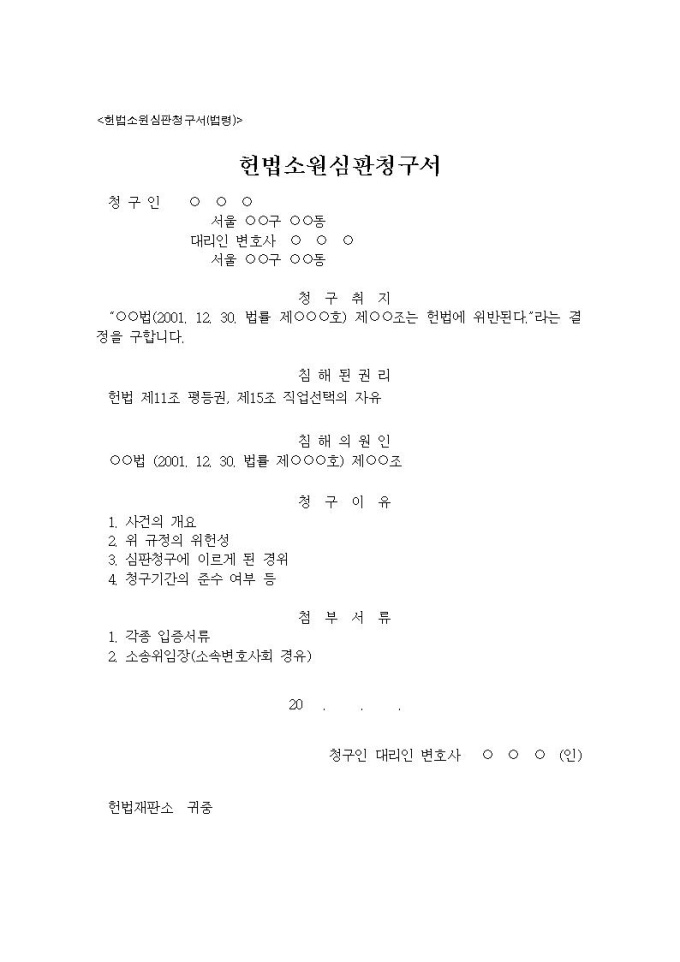 법령에 대한 헌법소원의 작성례