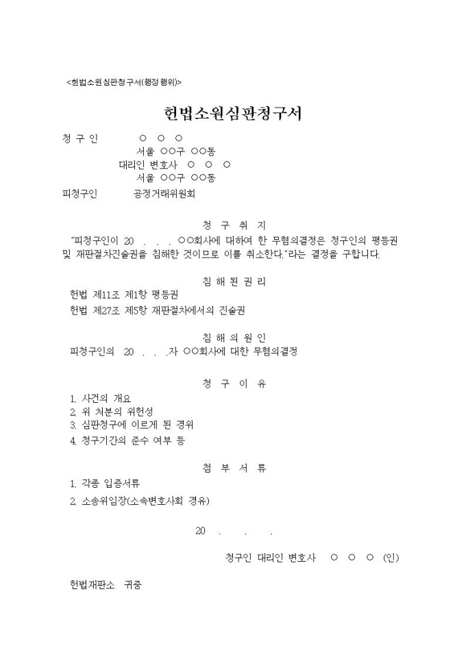 행정행위에 대한 헌법소원의 작성례
