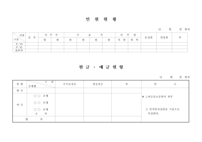 9,000원/월회사내 인원현황과 은행별 현금,예금 현황표입니다.