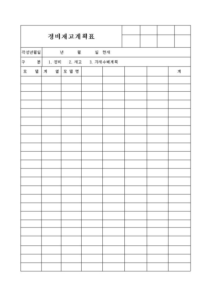 정비재고 계획표