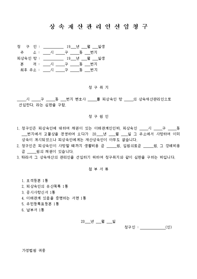 상속재산관리인 선임청구서