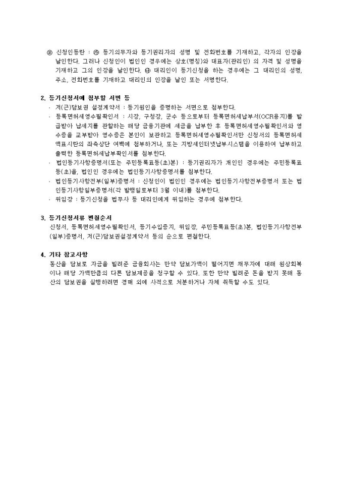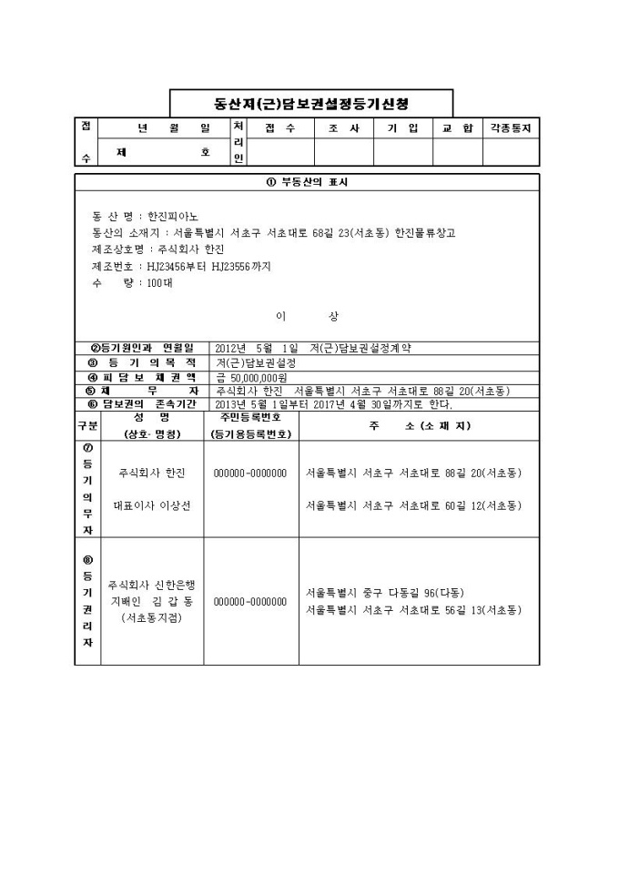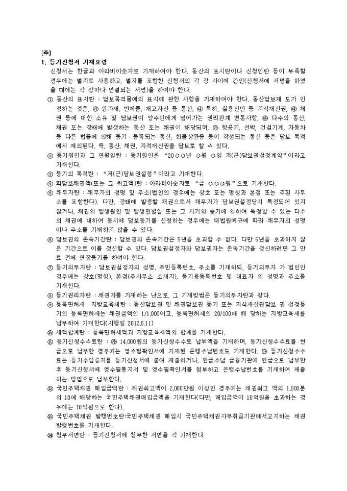 동산·채권 저(근)담보권설정등기신청서입니다.
