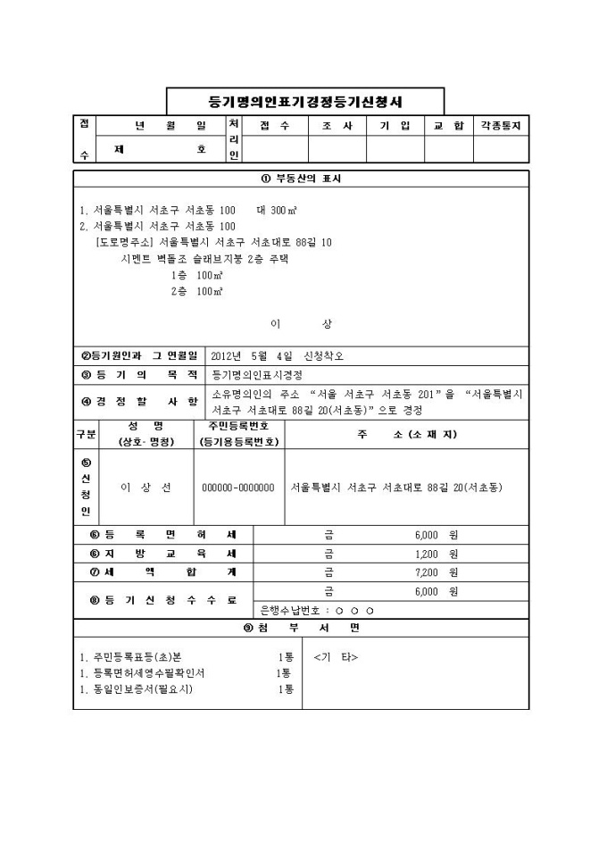 9,000원/월신청착오에 의한 등기명의인표시경정등기신청서(1)입니다.
