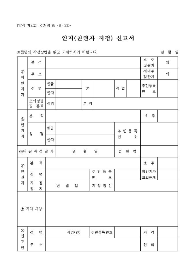인지(친권자 지정)신고서