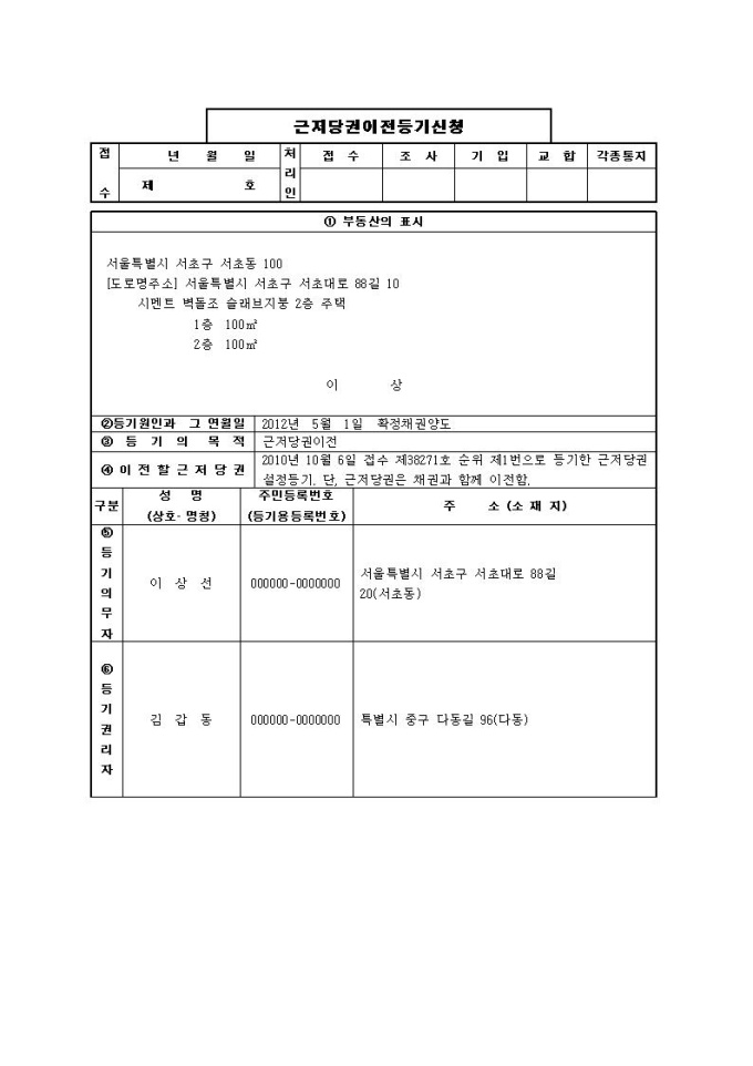 확정채권양도에 의한 근저당권이전등기신청서(1)