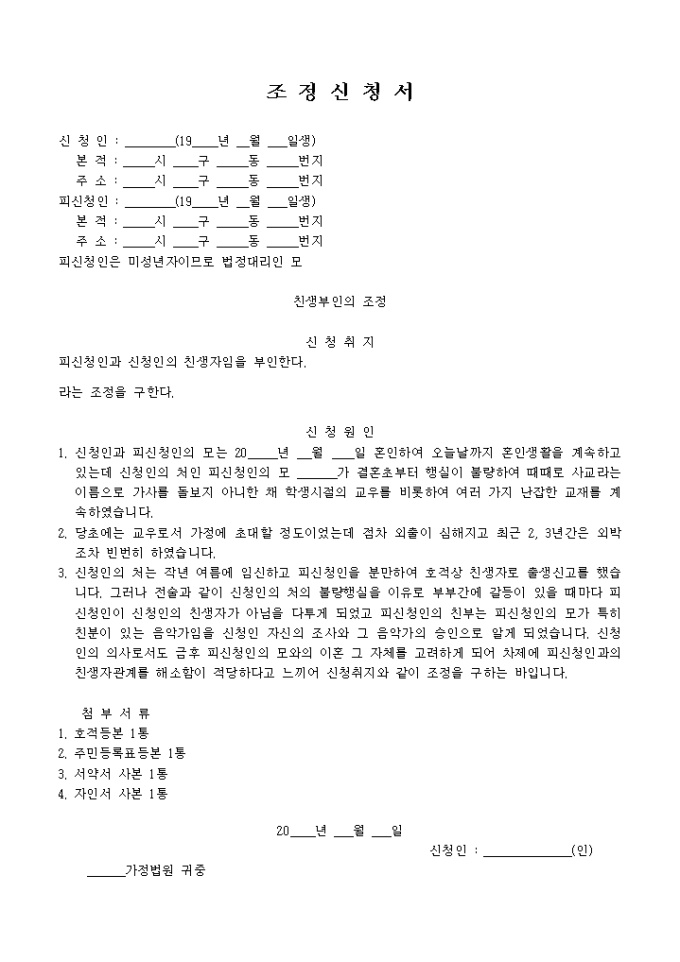 친생자부인 조정신청서