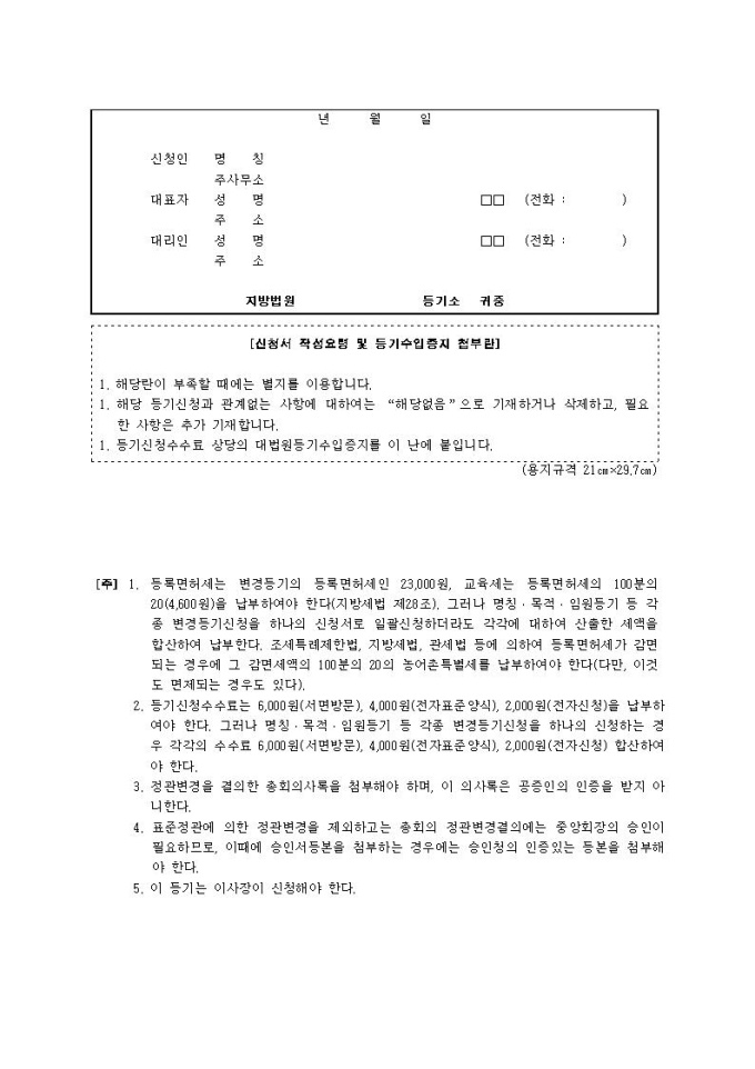 신용협동조합 변경등기신청서(출자 1좌의 금액과 출자납입방법변경)