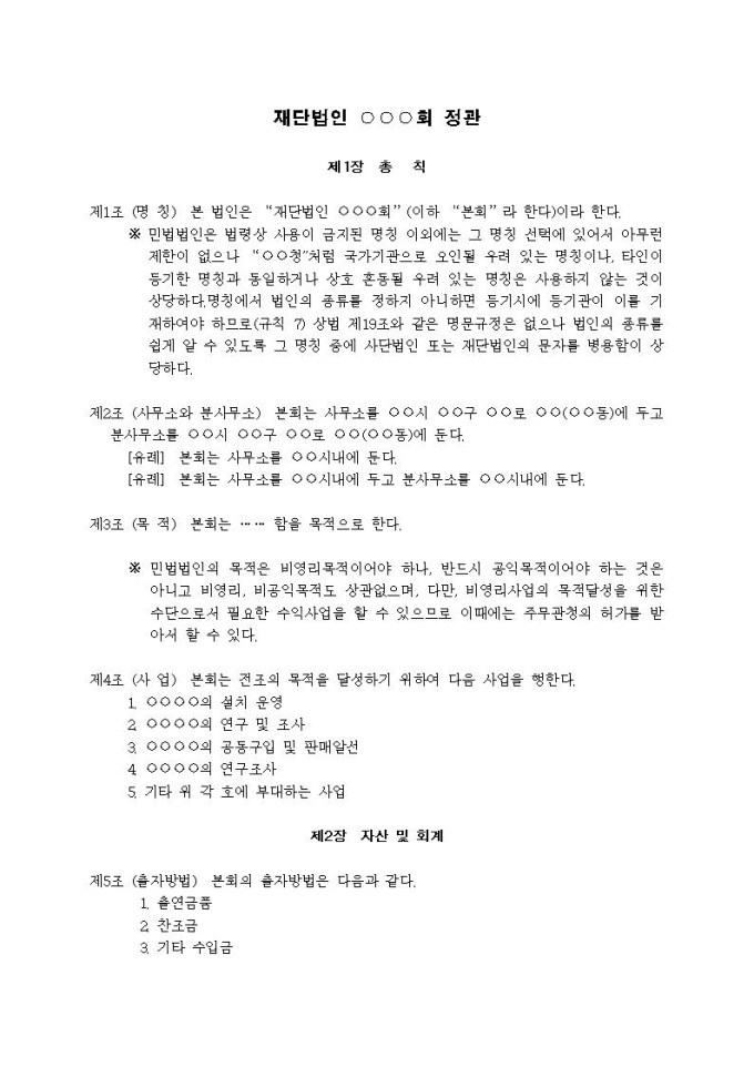 9,000원/월재단법인 설립등기신청서 [첨부서류 1] 재단법인 정관례입니다.