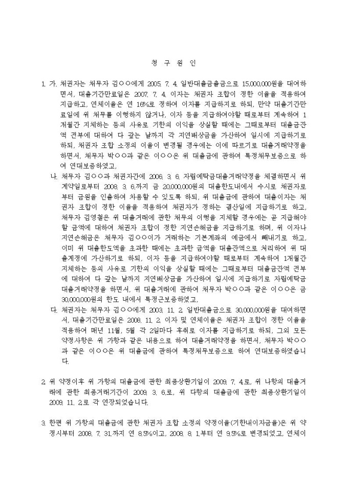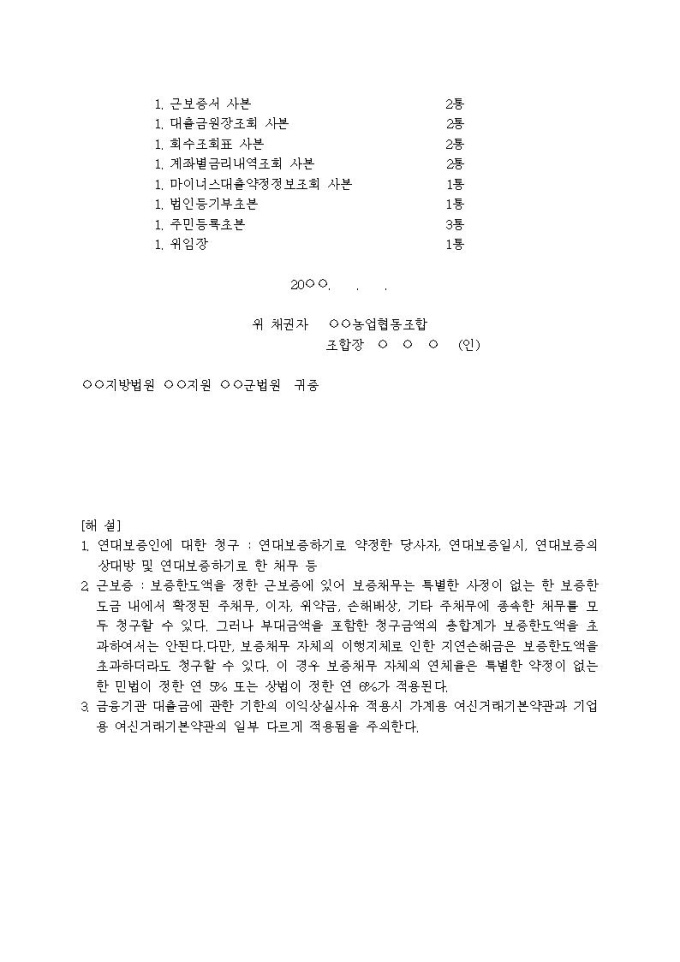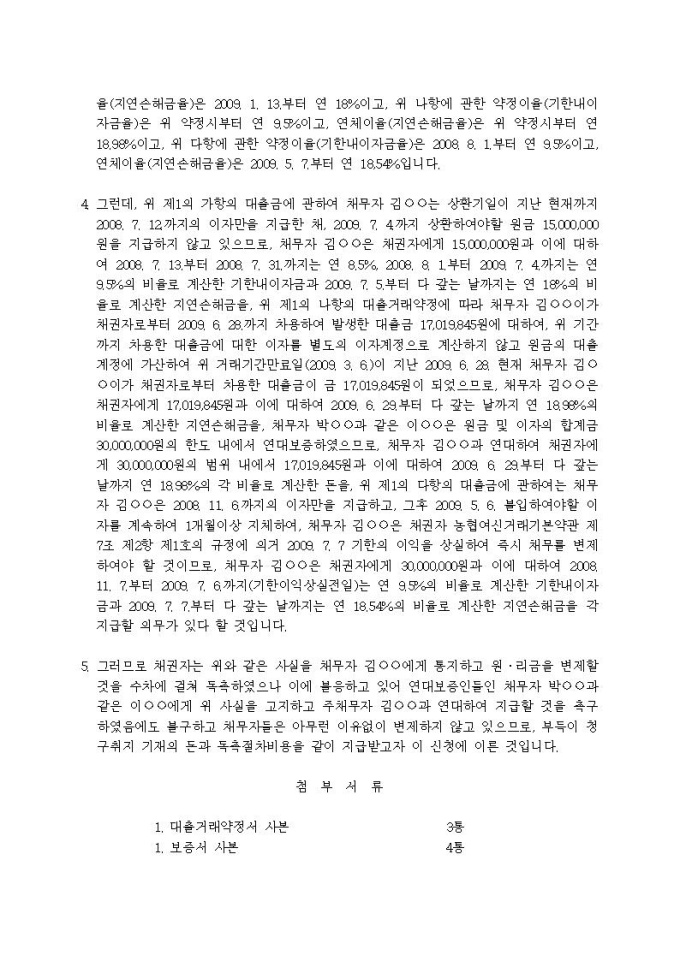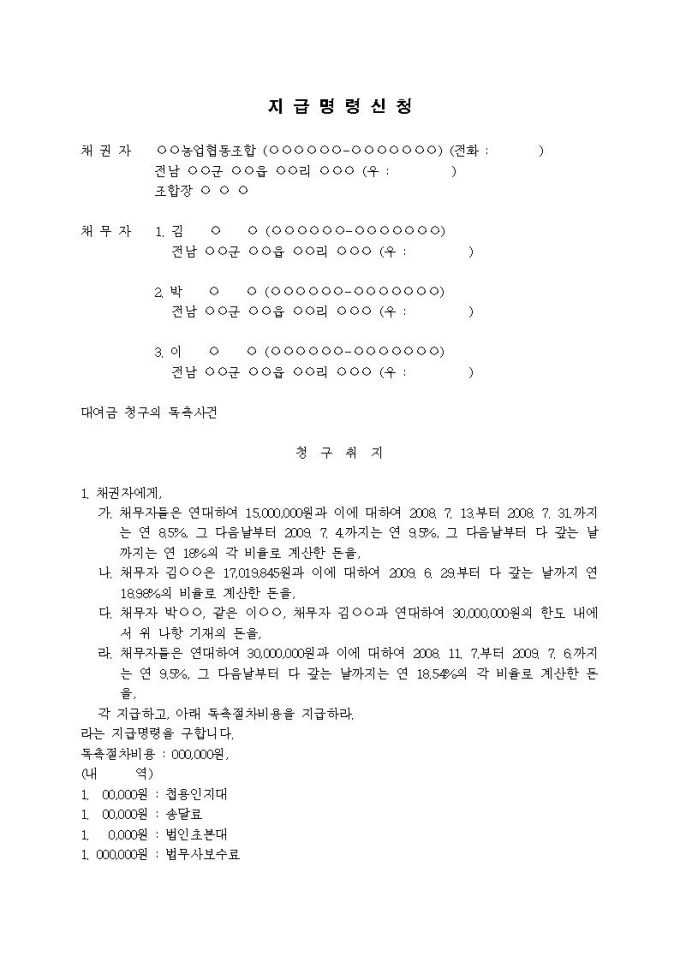 9,000원/월(지급명령신청서)대여금청구의 독촉사건(일반대출금, 자립예탁금)입니다.