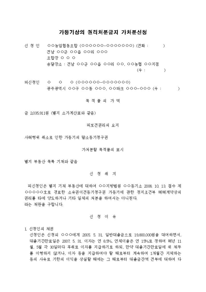 가등기상의권리처분금지 가처분신청서(사해행위취소)