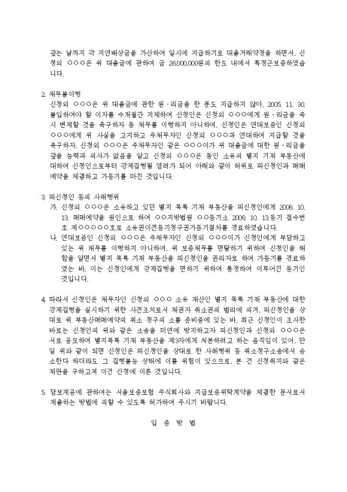 가등기상의권리처분금지 가처분신청서(사해행위취소)입니다.