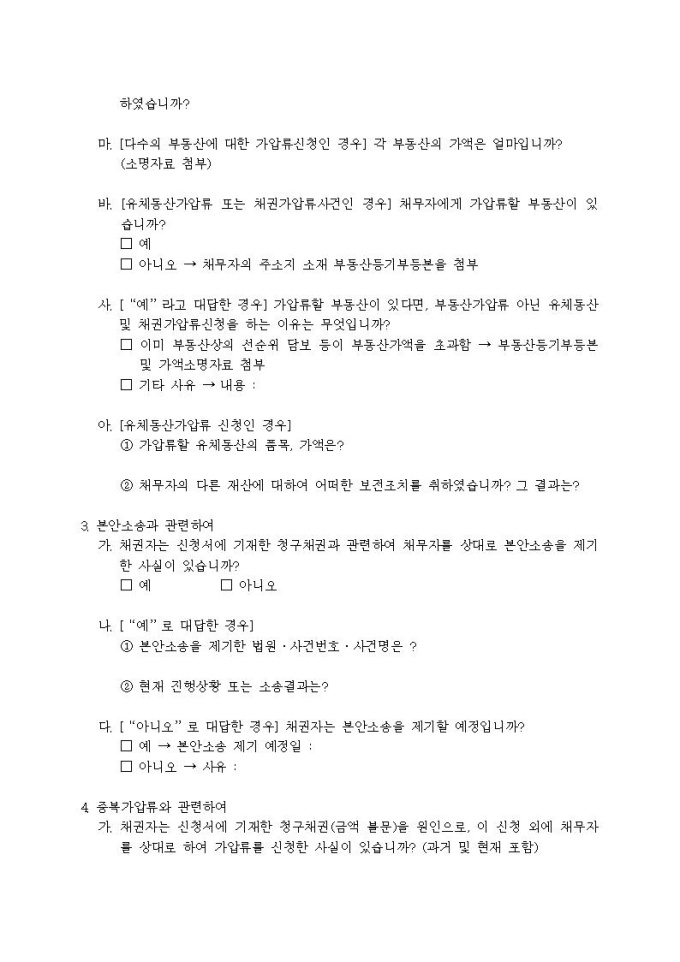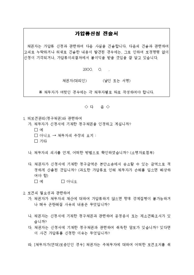 가압류신청 진술서