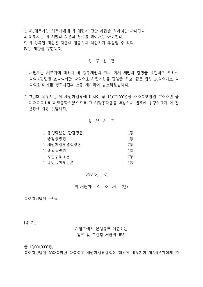 가압류에서 본압류로 이전하는 채권압류 및 추심명령신청서(3)