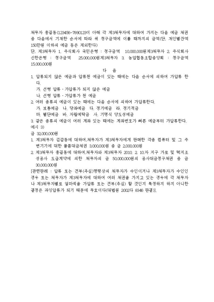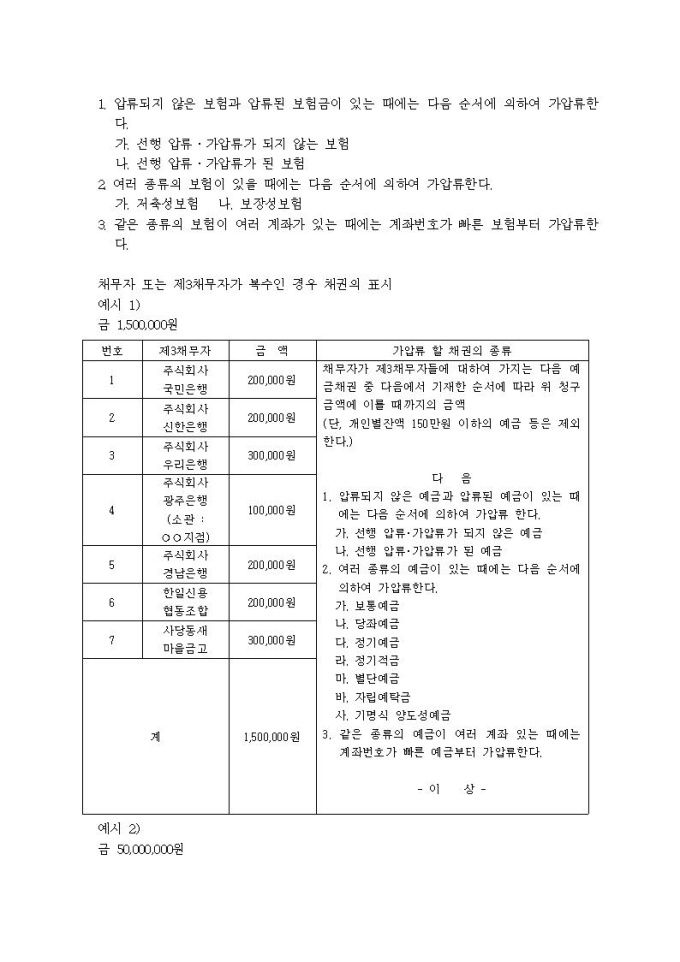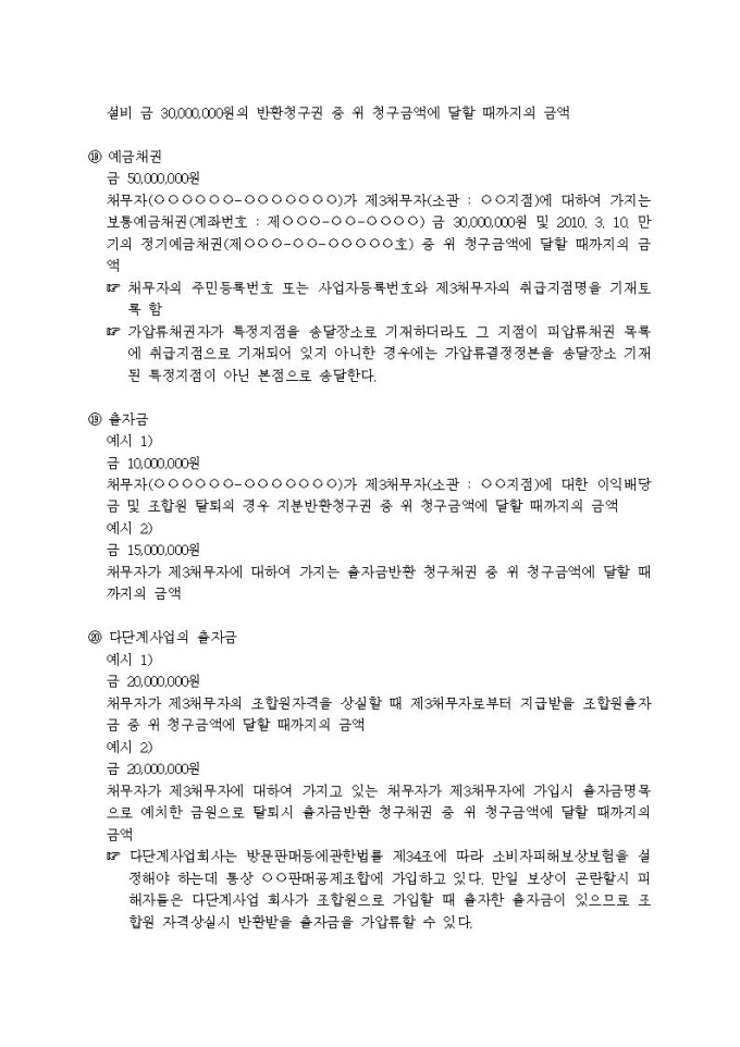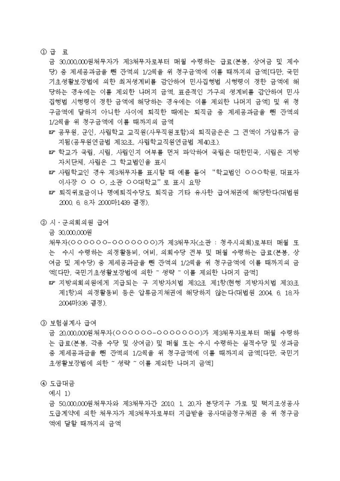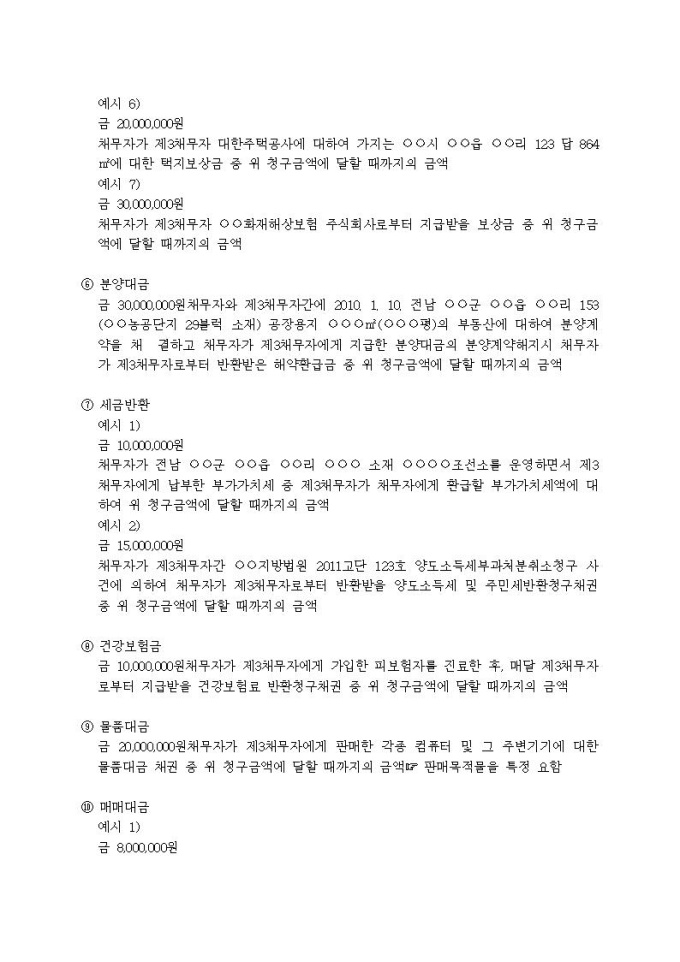 9,000원/월가압류할 채권의 표시례입니다.